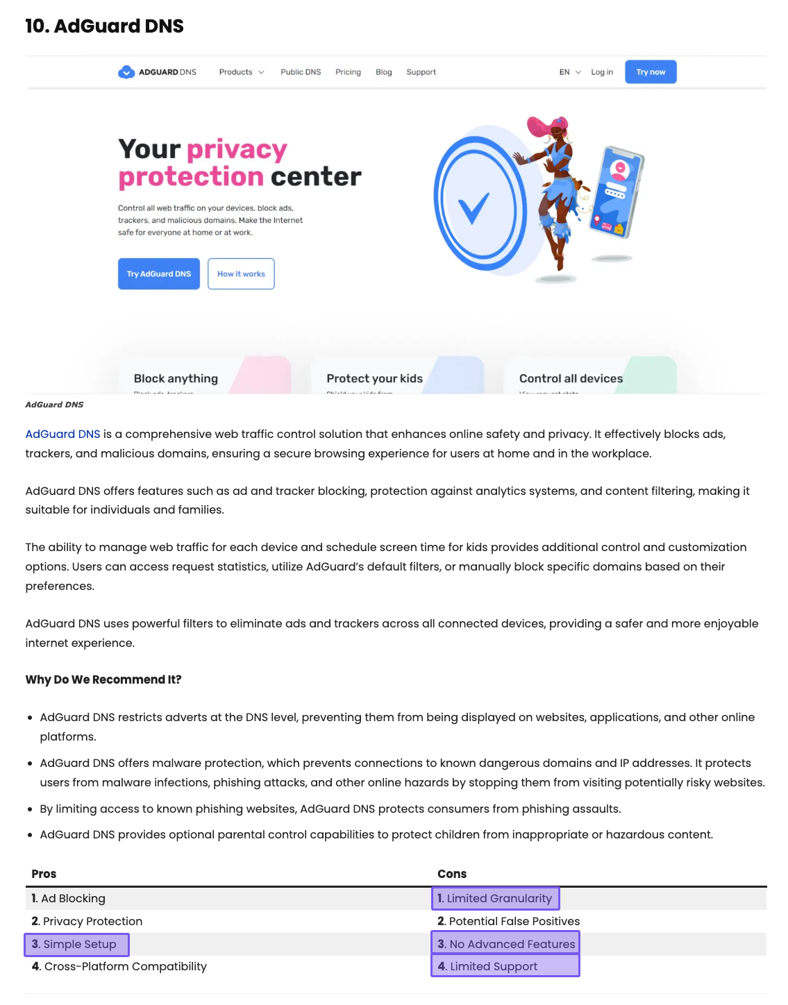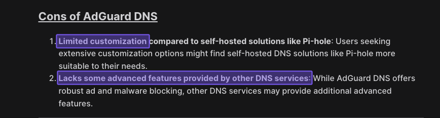 But if you're running a bigger company, managing IT for multiple clients, or need advanced features, AdGuard DNS might leave you wanting more – even the Enterprise plan might not have all the features and capabilities you need.