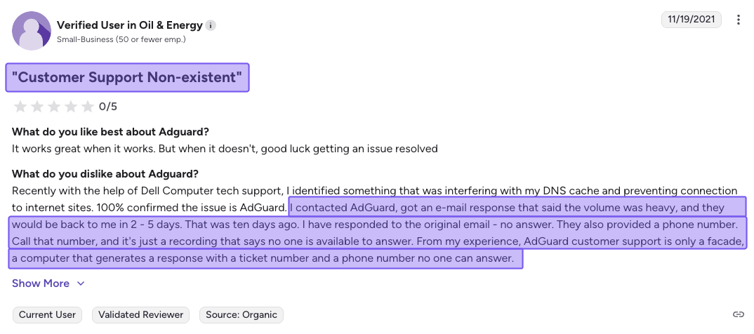 Where AdGuard really starts to struggle is in business and heavier use. Hard caps on queries, devices, and servers, limited integrations, and basic analytics make it feel more like a polished consumer tool than a true business-ready platform. Sure, it’s cheaper, and it can work for small teams, but you’ll hit its edges as you add locations, endpoints, and compliance or reporting requirements.