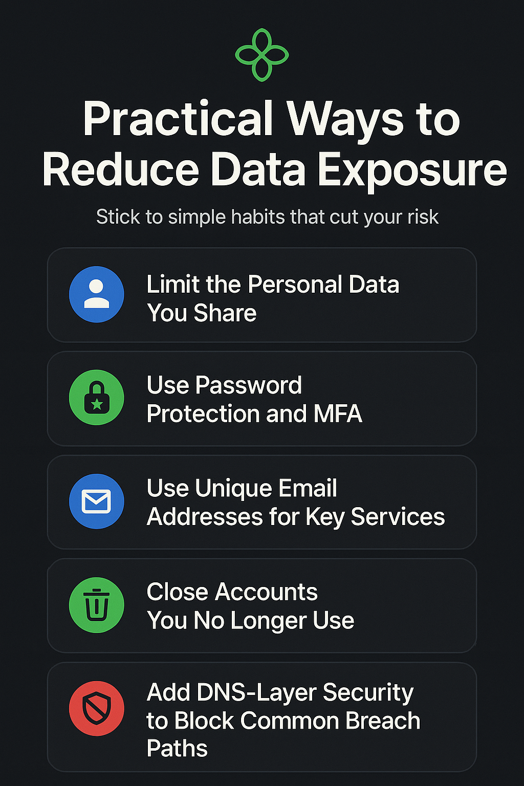 The less data you make available, the less data can be exposed in a breach. Practise data minimization. When signing up for a new service, only provide the required information. If a field for your phone number or full birth date is optional, leave it blank. For newsletters or services you don’t fully trust, consider using a separate “burner” email address to protect your primary account.