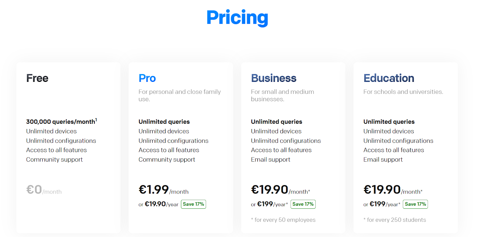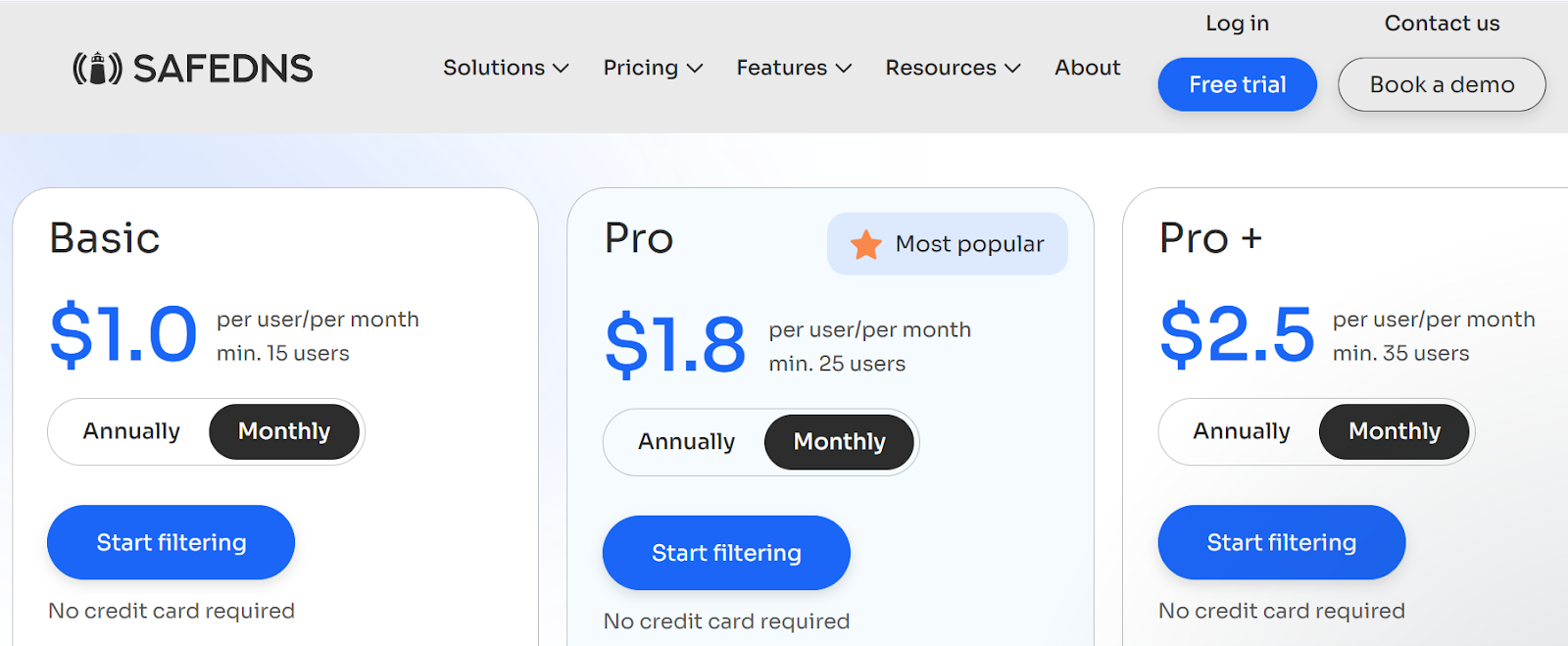 SafeDNS plans include Basic, Pro, and Pro Plus. Public ranges put Pro at roughly $1.8 per user each month and Pro Plus at $2.5. That means SafeDNS can undercut both Cisco Umbrella and some rivals. Control D still keeps pace, with a clear $2 per user figure for business, and lowers that figure for managed service providers and education, where SafeDNS also competes.
