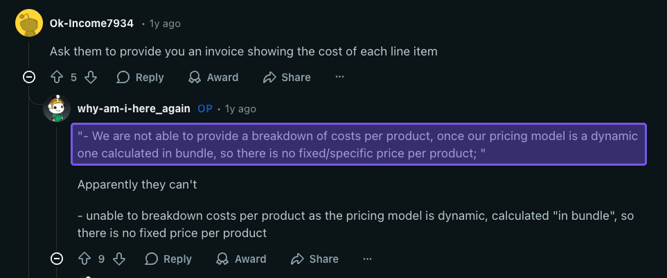 That case refers to a broader Cloudflare Enterprise deal, not Gateway/Zero Trust specifically, but it still shows how, even when you push for clarity, you may only get a lump-sum number rather than clean line items – exactly the kind of thing that makes a negotiated, opaque price feel even harder to trust.
