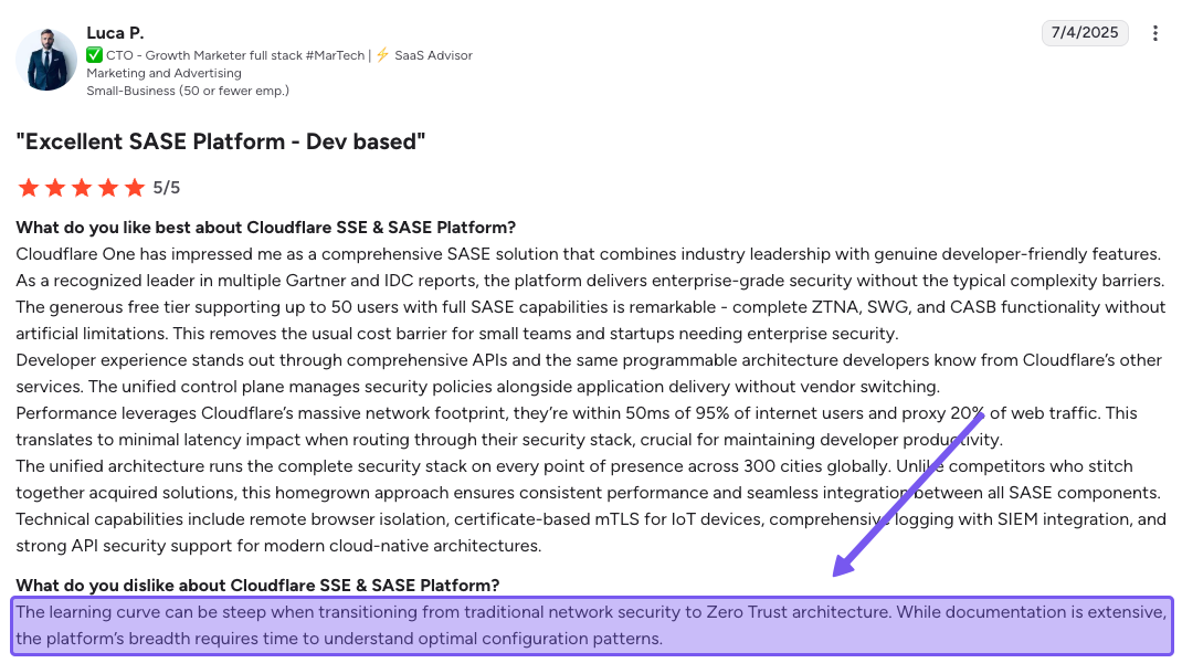 Cloudflare Zero Trust is impressive on paper. You get fast global network performance, a full SWG, DLP, CASB, RBI, email security, and deep integrations, but this depends on whether you’re on the right plan and willing to pay for the add-ons.