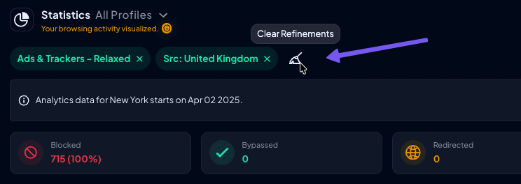 Anyone who spends time in the Statistics page knows how quickly refinements stack up. Getting back to a clean slate used to mean clicking each filter pill individually to remove them, which was tedious to say the least.