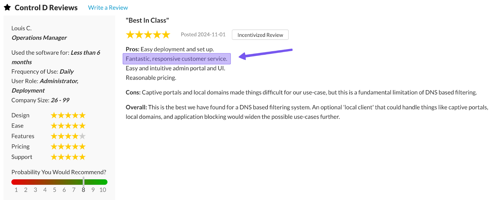 This is largely due to Control D’s 24-hour guaranteed response time – with users often receiving a reply in just a few hours – and because support queries are usually conducted by product engineers themselves, this ensures your issue is resolved promptly and thoroughly, with recommendations on how to prevent similar problems from occurring again.
