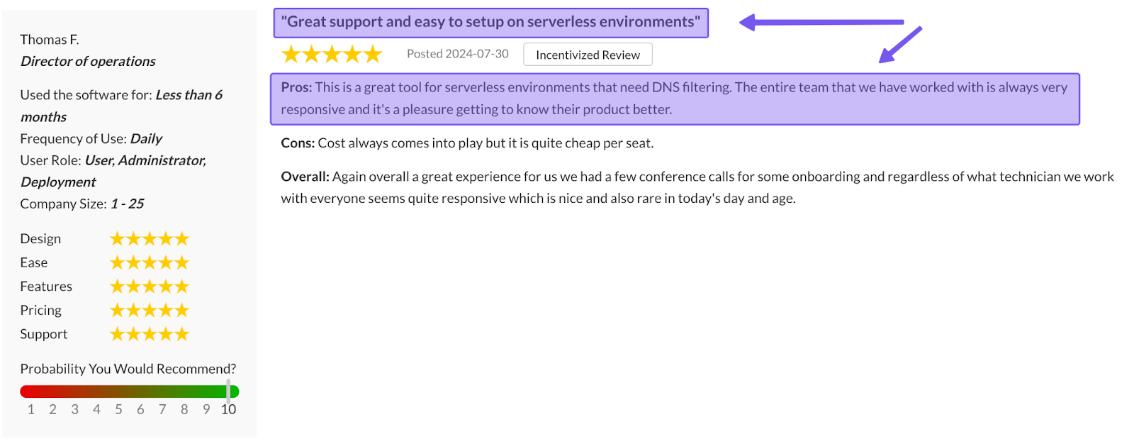 Their DNS product, Umbrella, while competent, lacks the advanced features and support necessary to keep organizations safe and secure on the internet.