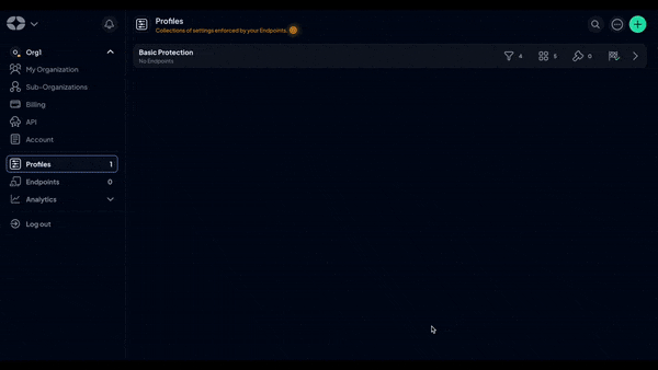 Create unlimited Sub-Organizations under your parent account – one for each client, department, or site. Each Sub-Organization acts as a container for the stuff that matters – Profiles, Endpoints, analytics – so policies and data don’t bleed across clients or locations.