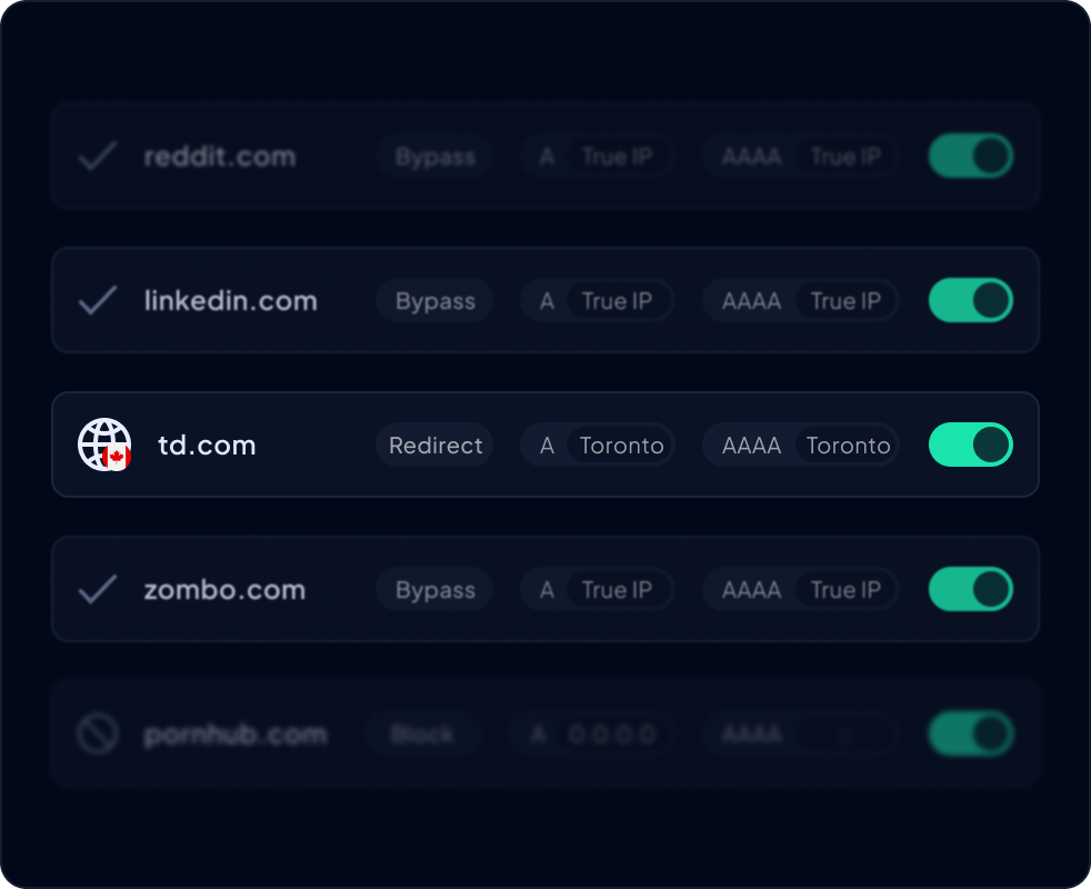 DNS filtering intercepts domain name lookups before they resolve to IP addresses. When an employee types a blocked website into the search bar, the DNS filter prevents the connection. This is one of the most effective methods to block access to unwanted websites. That said, DNS filtering can't block specific pages within a website; it can only block entire domains. You manage access at the domain level rather than individual web pages.