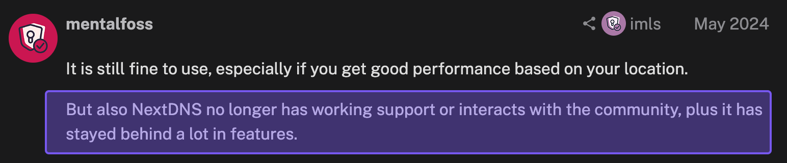 - NextDNS has fewer than 50