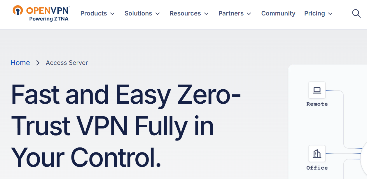 | Best self-hosted VPN option | OpenVPN Access | Gives full control over VPN placement and routing for teams that want to run their own gateways. |