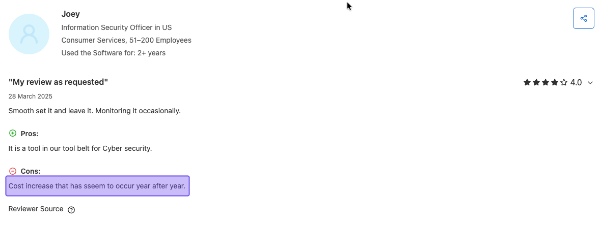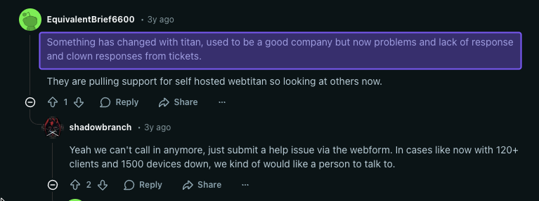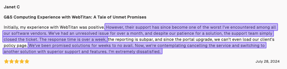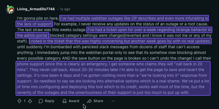 We mentioned this earlier, but renewal pricing increases are seemingly common, meaning the rate you pay now may not be the same in the future. Without clear, upfront MSP pricing and predictable costs, it can be difficult to budget or compare WebTitan to other options.